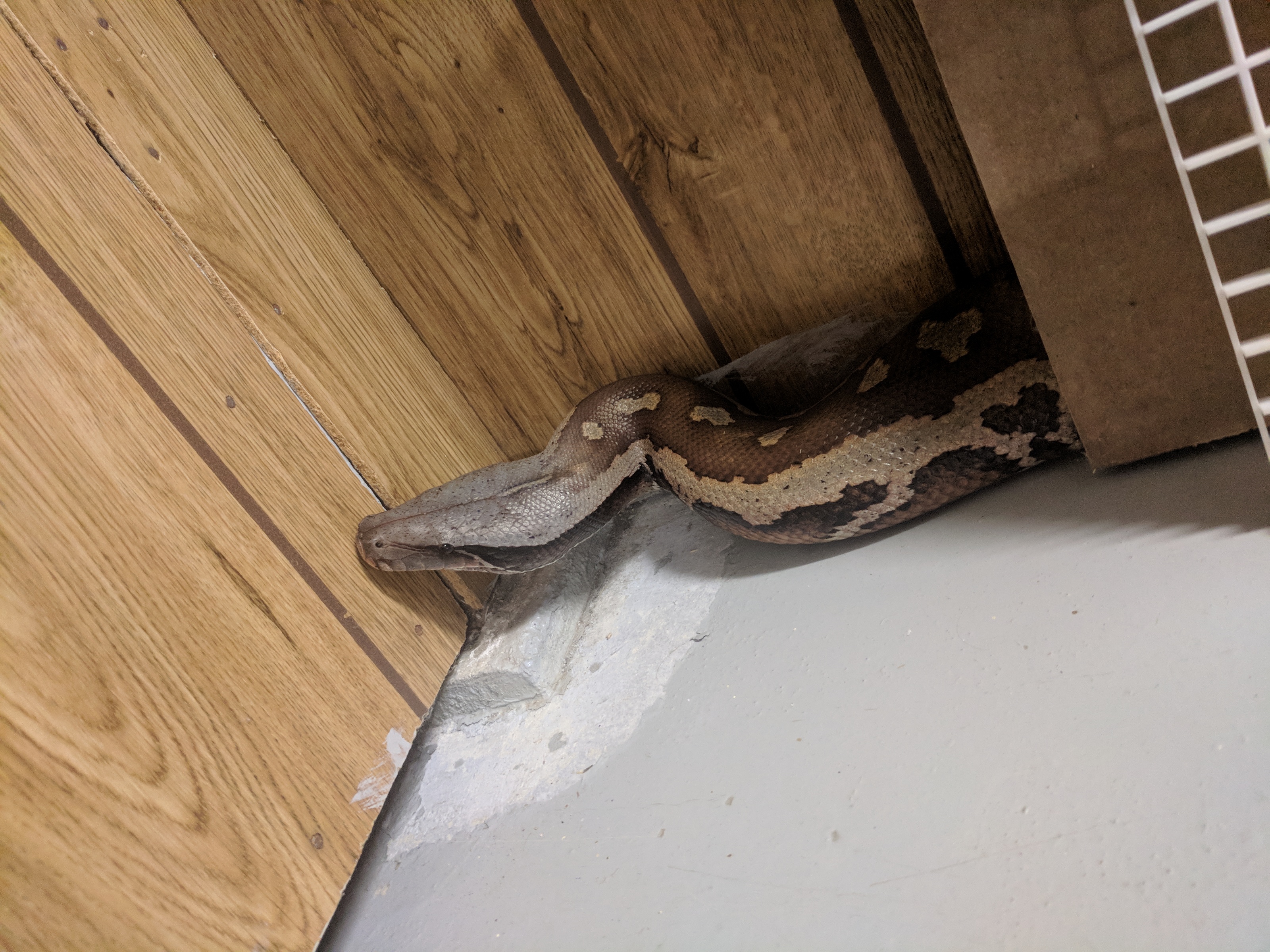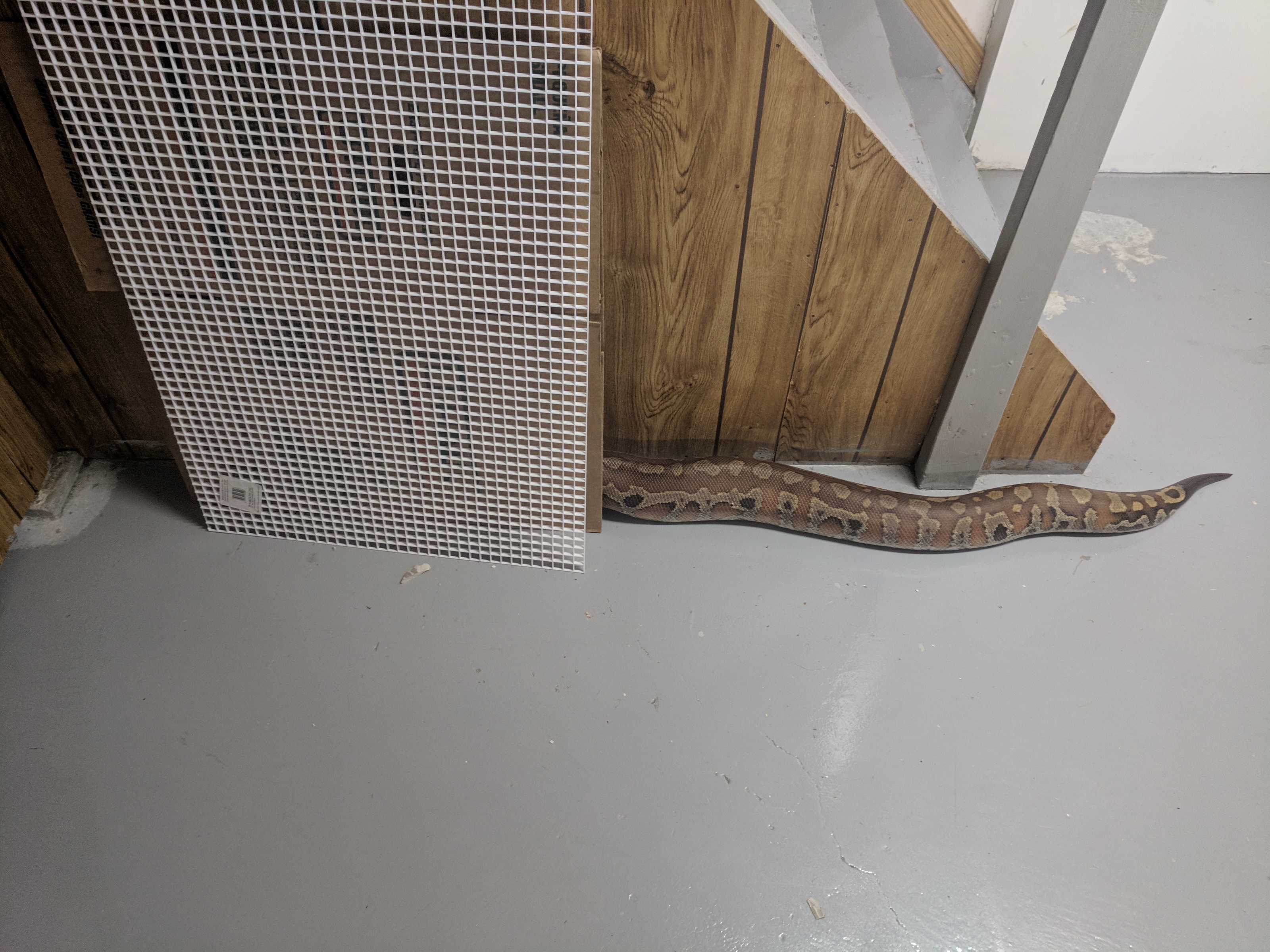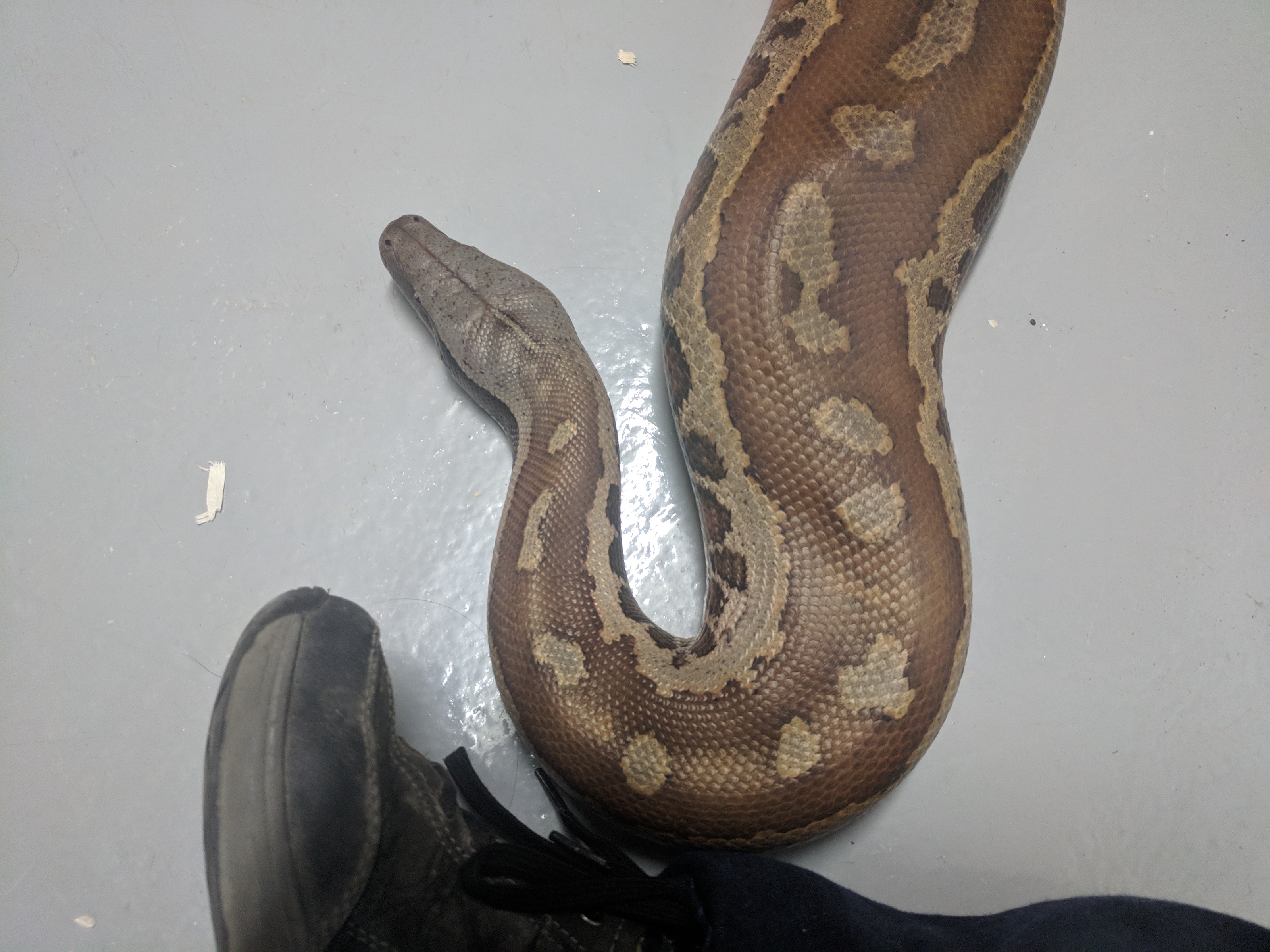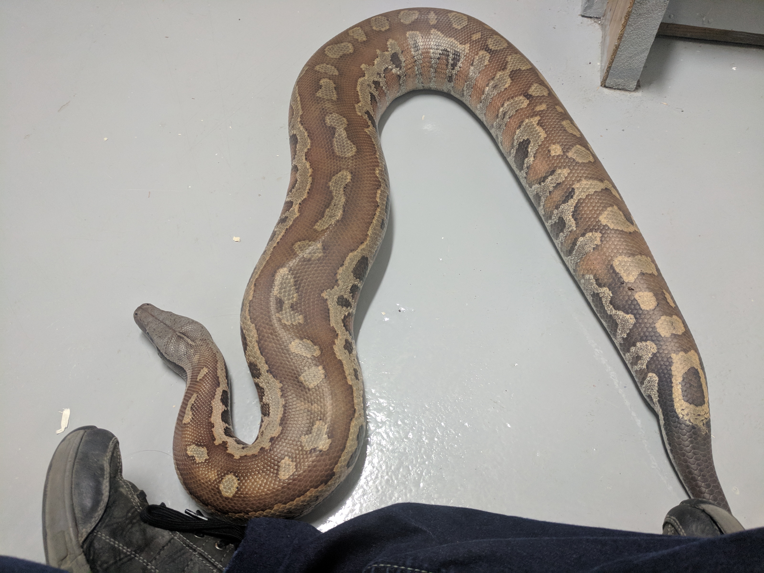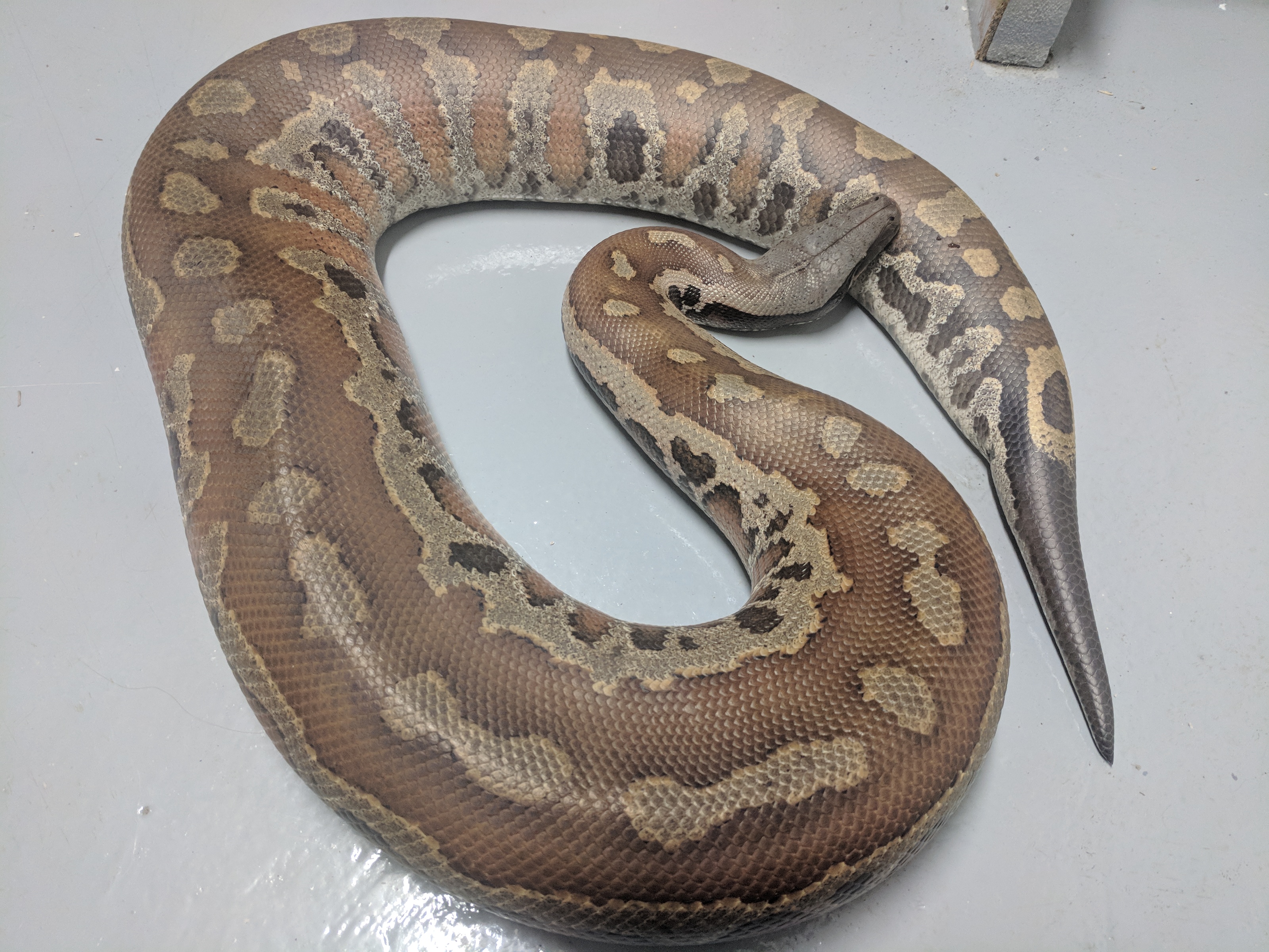 Unfortunately I only have terrible basement photos of him right now, but I still wanted to share. This is Leech, my new Blood Python. I have wanted a blood for a while now, and when Leech came available (as a tame adult male) I jumped at the chance. He arrived last month (pictures of him in the tank) but was in shed, and then he had to eat and digest, so Monday was the first day I got to take him out for some handling. We’re still getting to know each other of course, but he enjoyed some time checking out my basement, and I enjoyed snapping some pictures of him. I hope you enjoy the pictures as much as I enjoy having him here 🙂