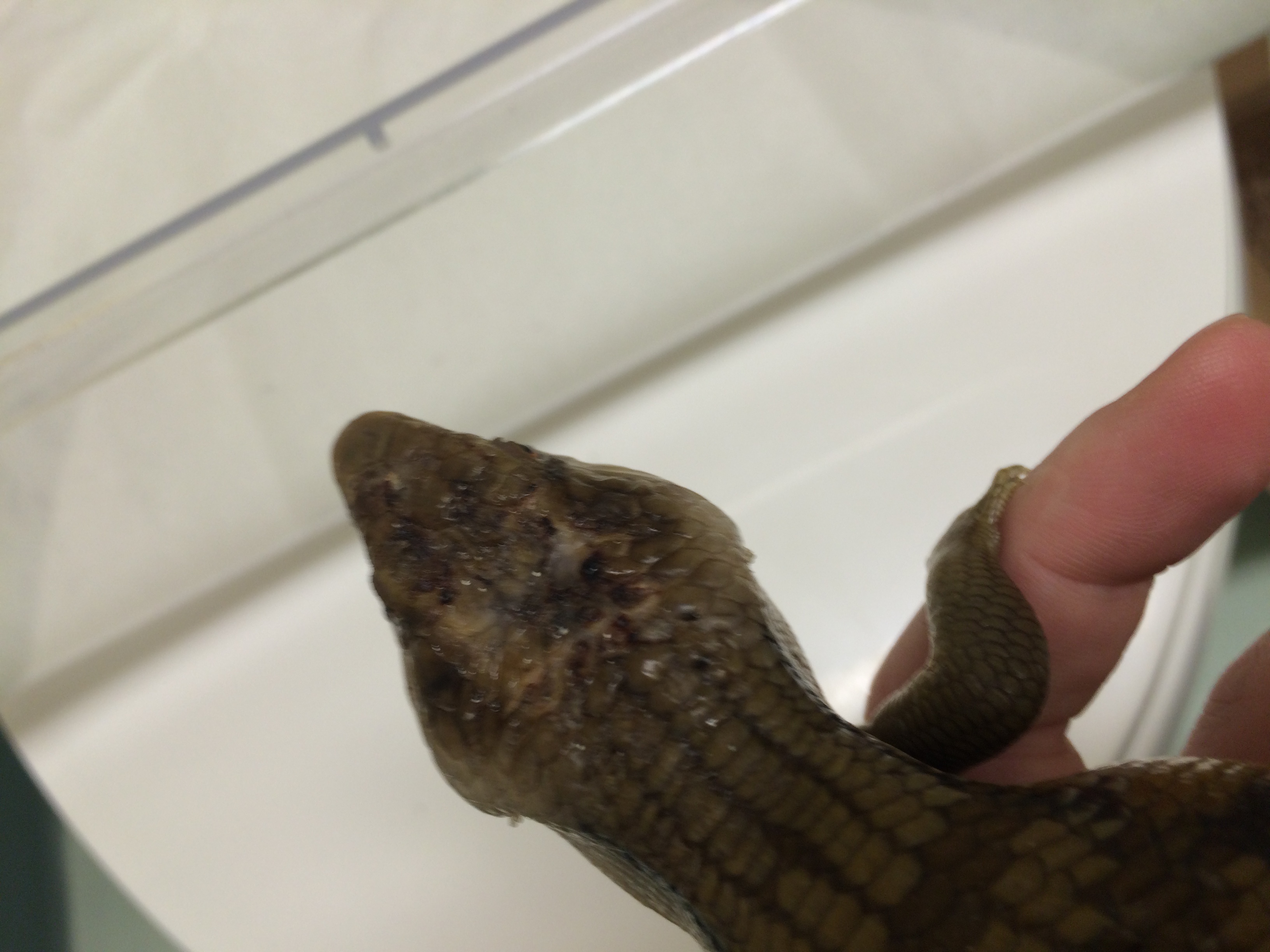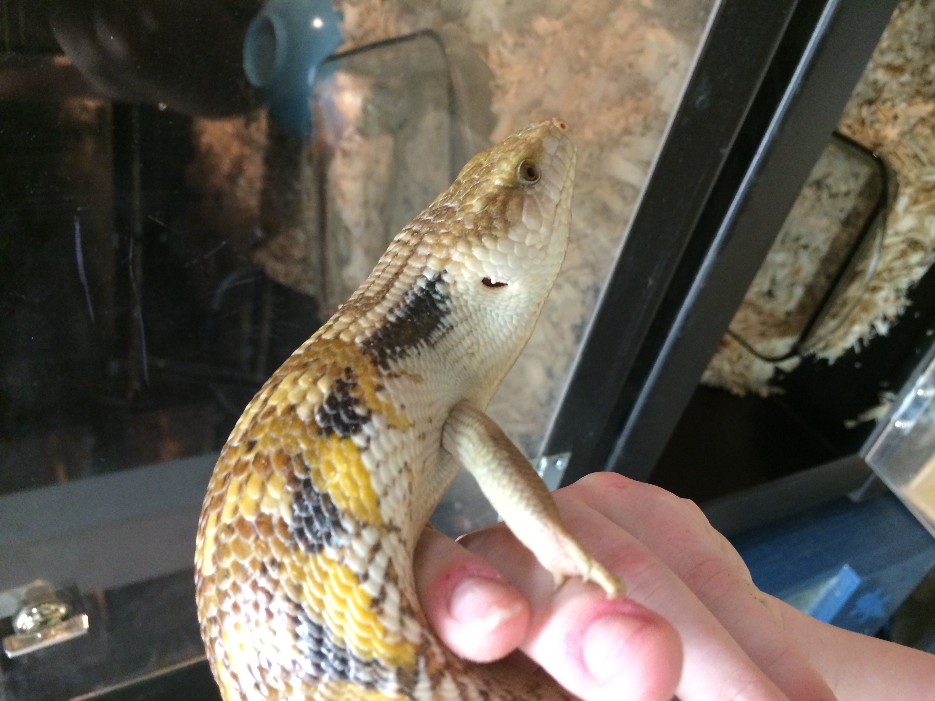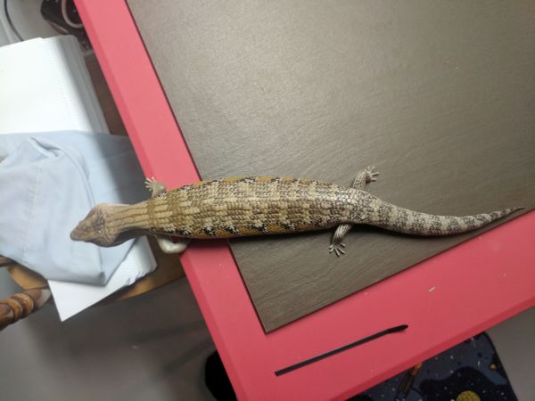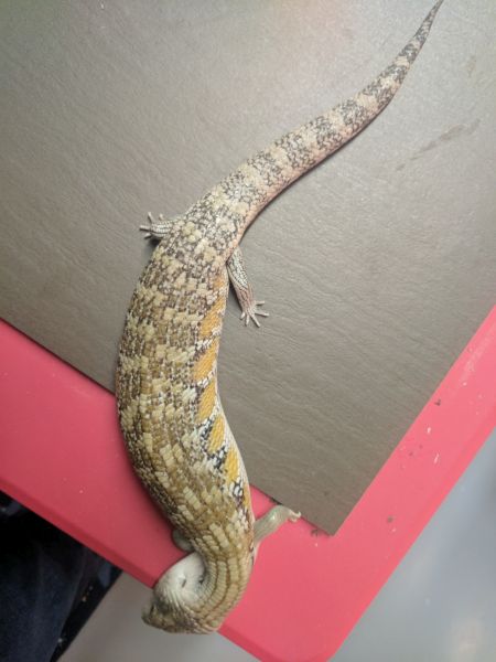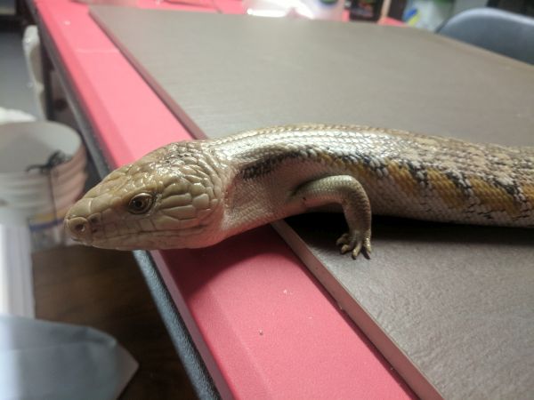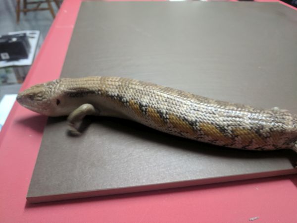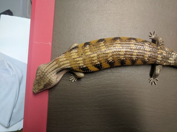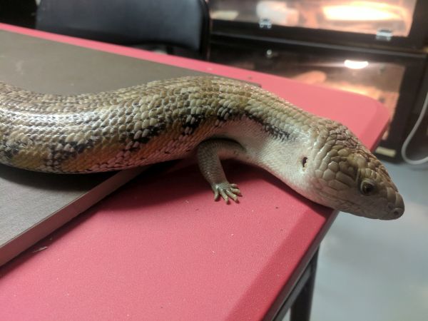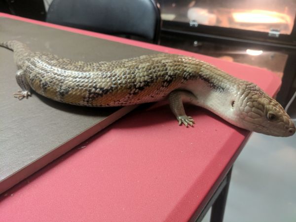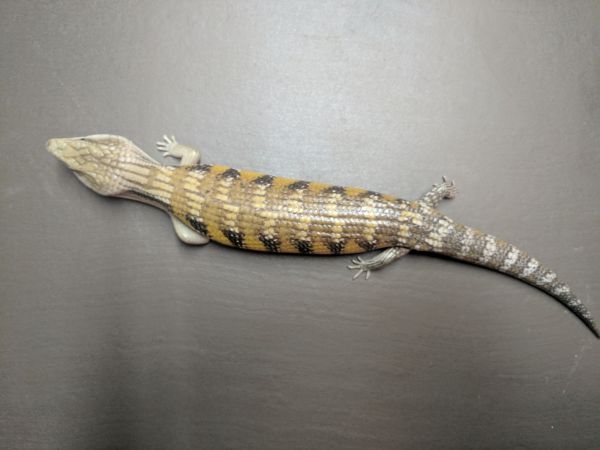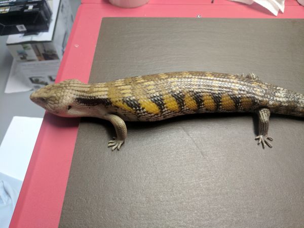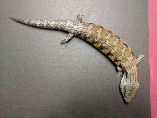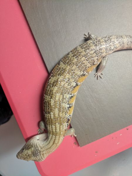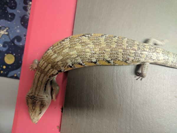 History: These animals are of unknown origin. They were supplied by National to Petsmart here in Winnipeg in October of 2015. Flambe arrived first and had burns on her head and scars on various parts of her body. She was deemed unsellable and sent to me. National sent a replacement to the Petsmart, this time Saute, who had the same injuries and was again sent to me. Both have since recovered very well, though they still have some scaring and weird scales. In 2017 Flambe (female) produced 5 babies, and while Saute (male) didn’t produce anything, he did breed with multiple females in spring. They were approximately the same size when they arrived and were obviously living in similar conditions and likely with multiple other skinks (based on the scarring), so are possibly siblings, but that is not for sure at all.
