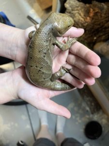 Hello friends! The past month has been pretty busy for me and for ME, and while we didn’t get any more Blue Tongue Skink babies after the first two litters, we did get one tiny new face who appeared…