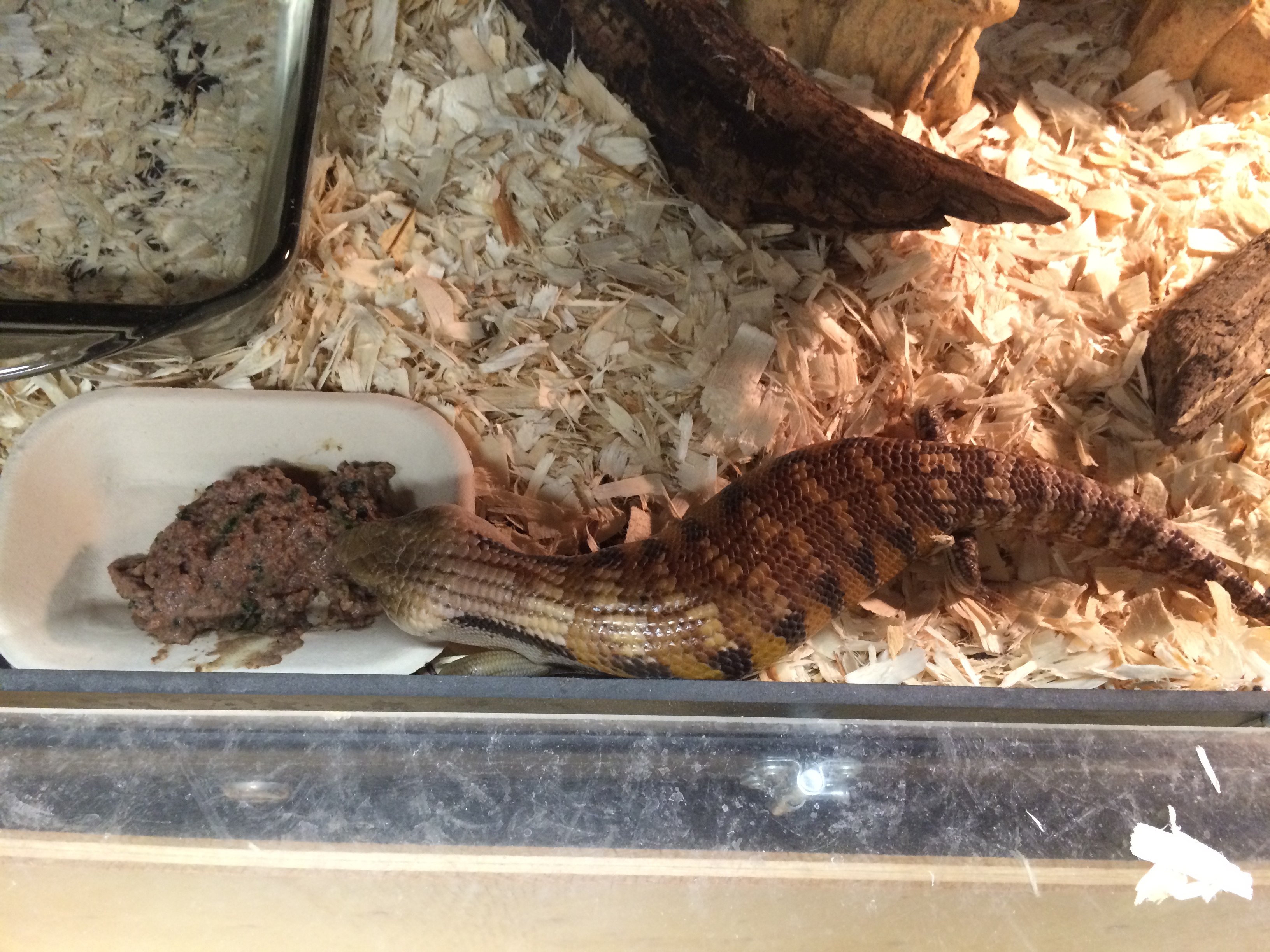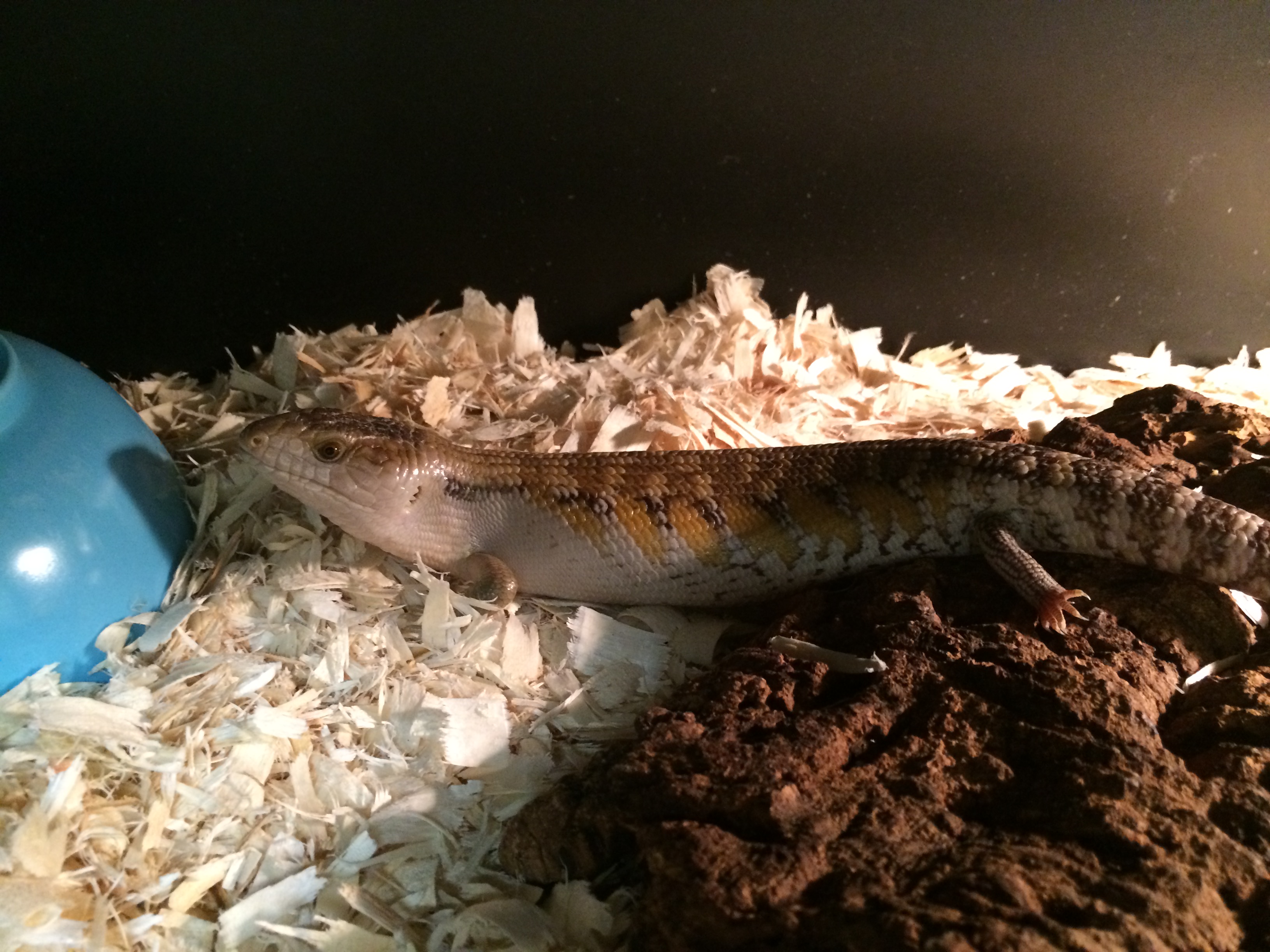 I picked up two (possible) pairs of these new skink – a smaller juvenile pair and a larger adult pair. Because I do not know how social this species is the pairs have been split up, with the larger pair on one side of a tank, and the smaller pair on the other side.