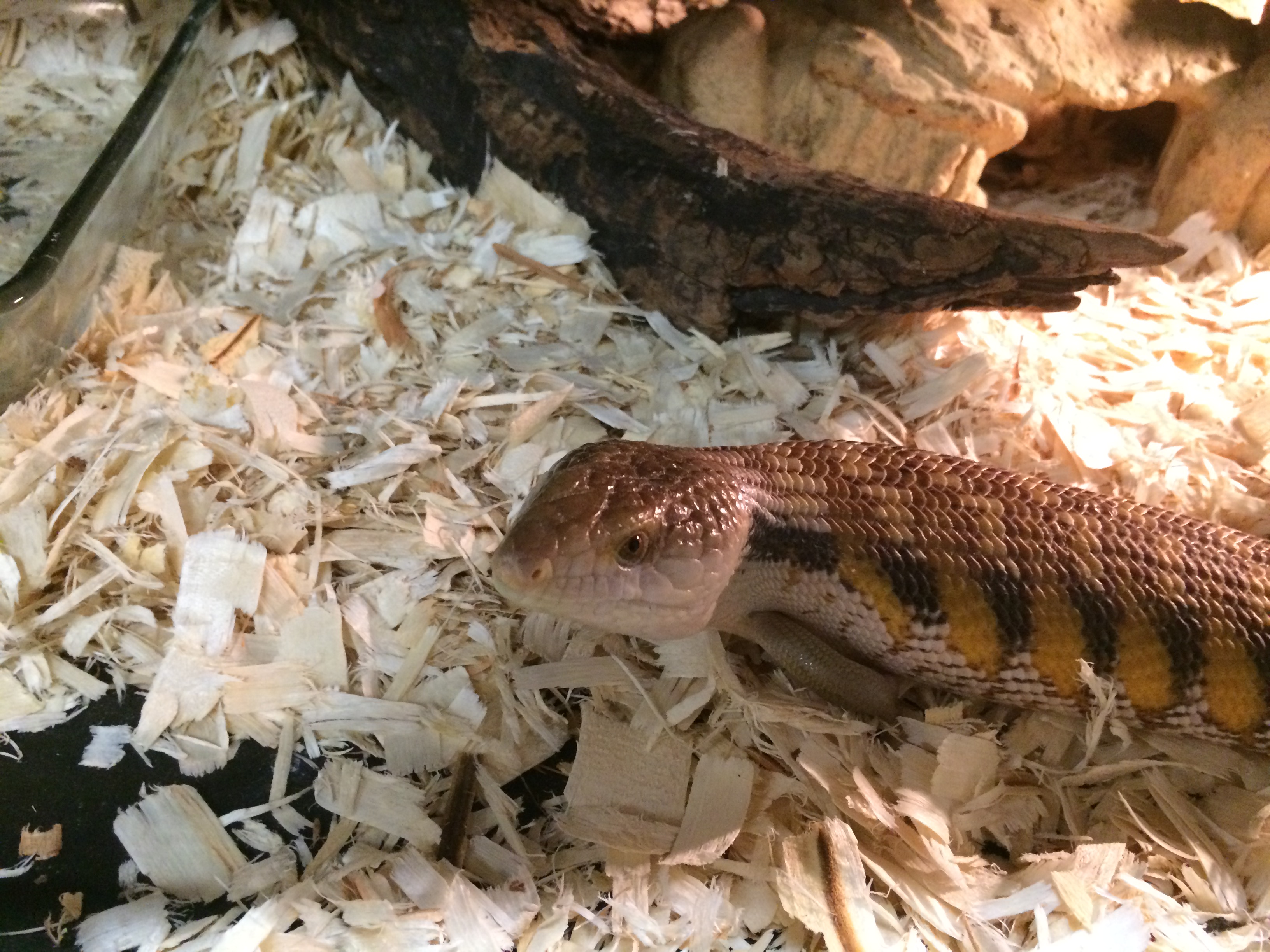 Their scientific name (if I’ve guessed the subspecies correctly) is Eugongylus albofasciolatus. They originate from around the Solomon Islands, and are quite long but very slender. They seem to have no natural fear of humans and have shown a voracious appetite for insects so far. They like to dig tunnels and burrow through the dirt, but I’ve also caught them climbing the branches of the tank a few times.