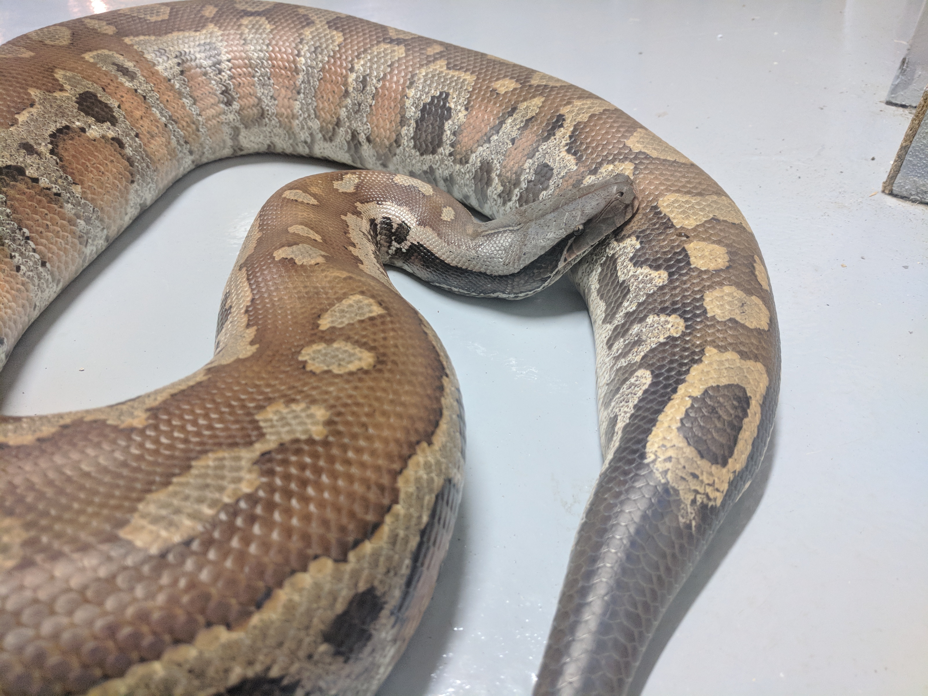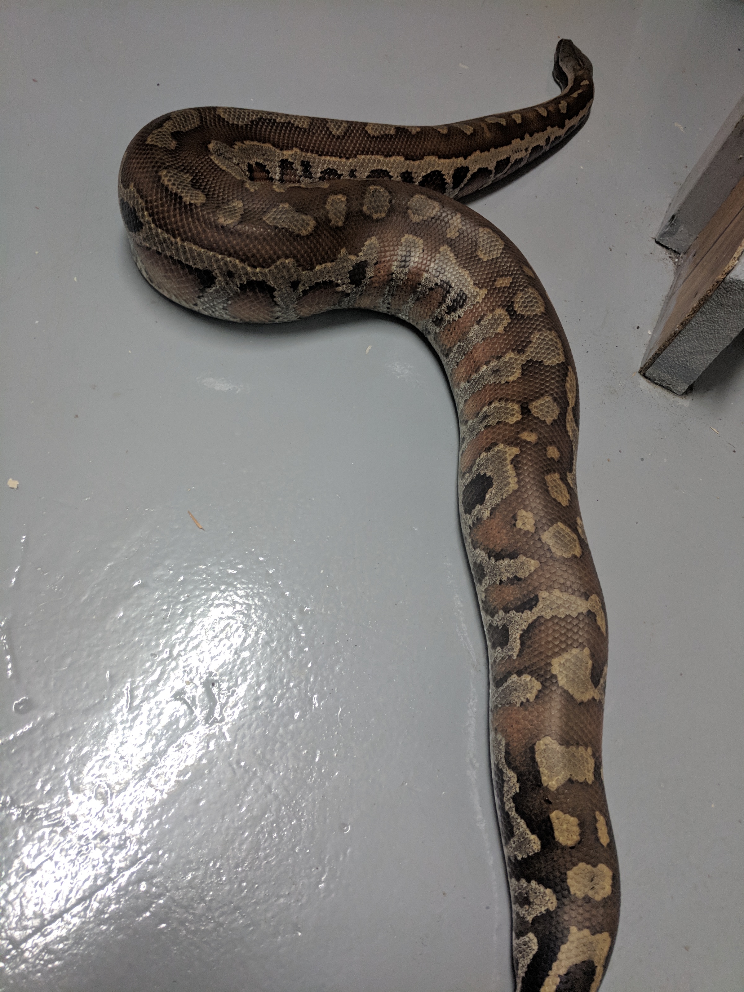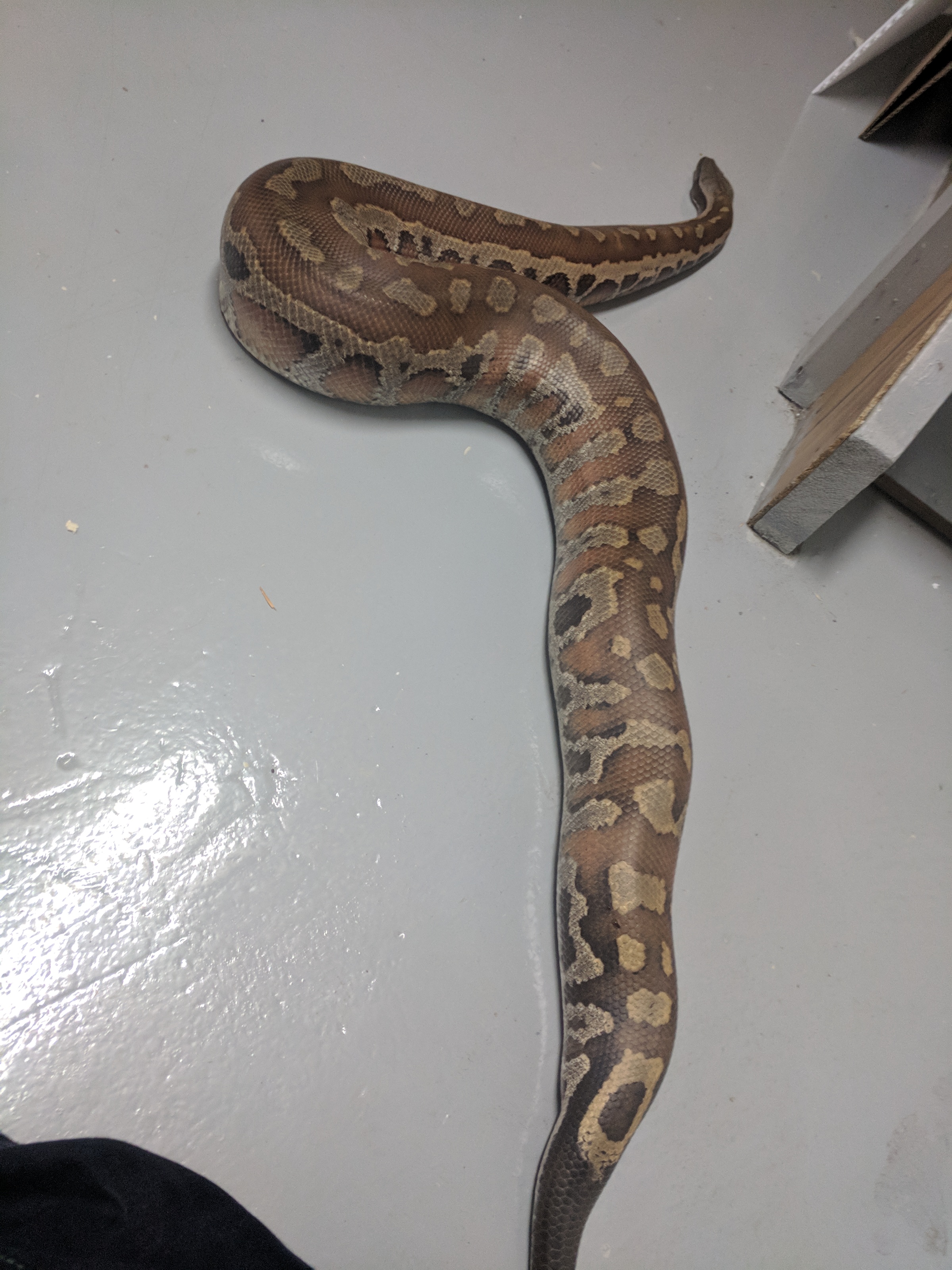 Unfortunately I only have terrible basement photos of him right now, but I still wanted to share. This is Leech, my new Blood Python. I have wanted a blood for a while now, and when Leech came available (as a tame adult male) I jumped at the chance. He arrived last month (pictures of him in the tank) but was in shed, and then he had to eat and digest, so Monday was the first day I got to take him out for some handling. We’re still getting to know each other of course, but he enjoyed some time checking out my basement, and I enjoyed snapping some pictures of him. I hope you enjoy the pictures as much as I enjoy having him here 🙂