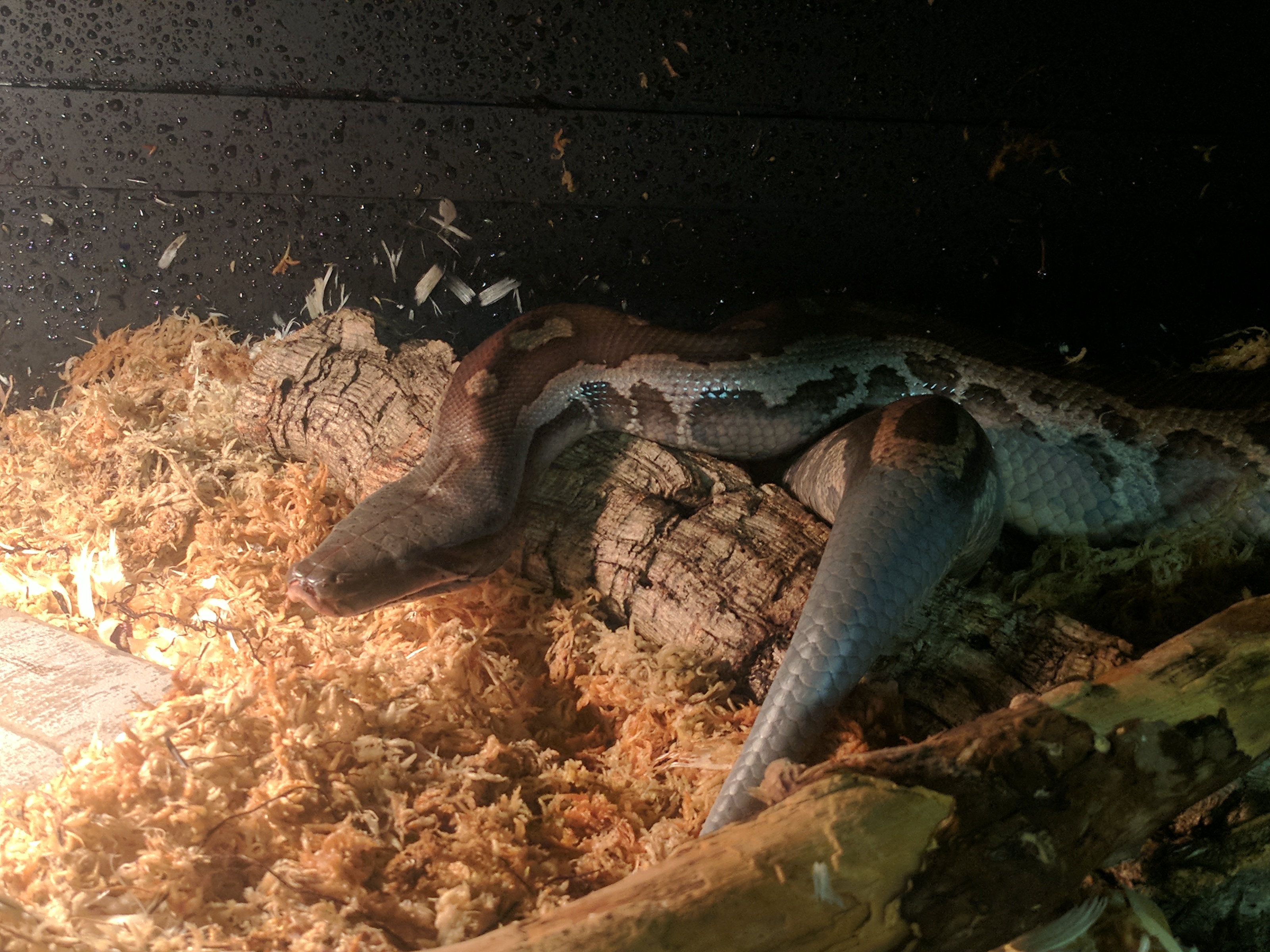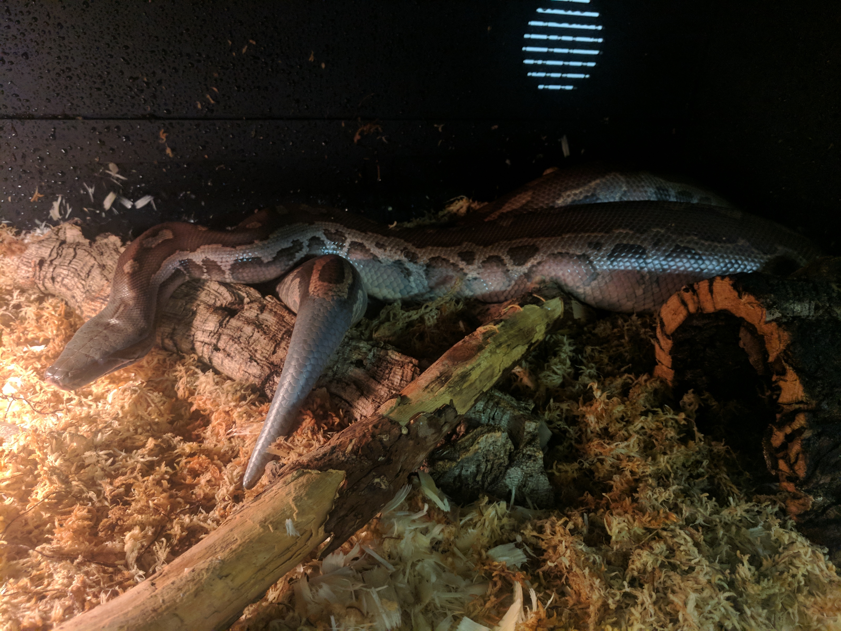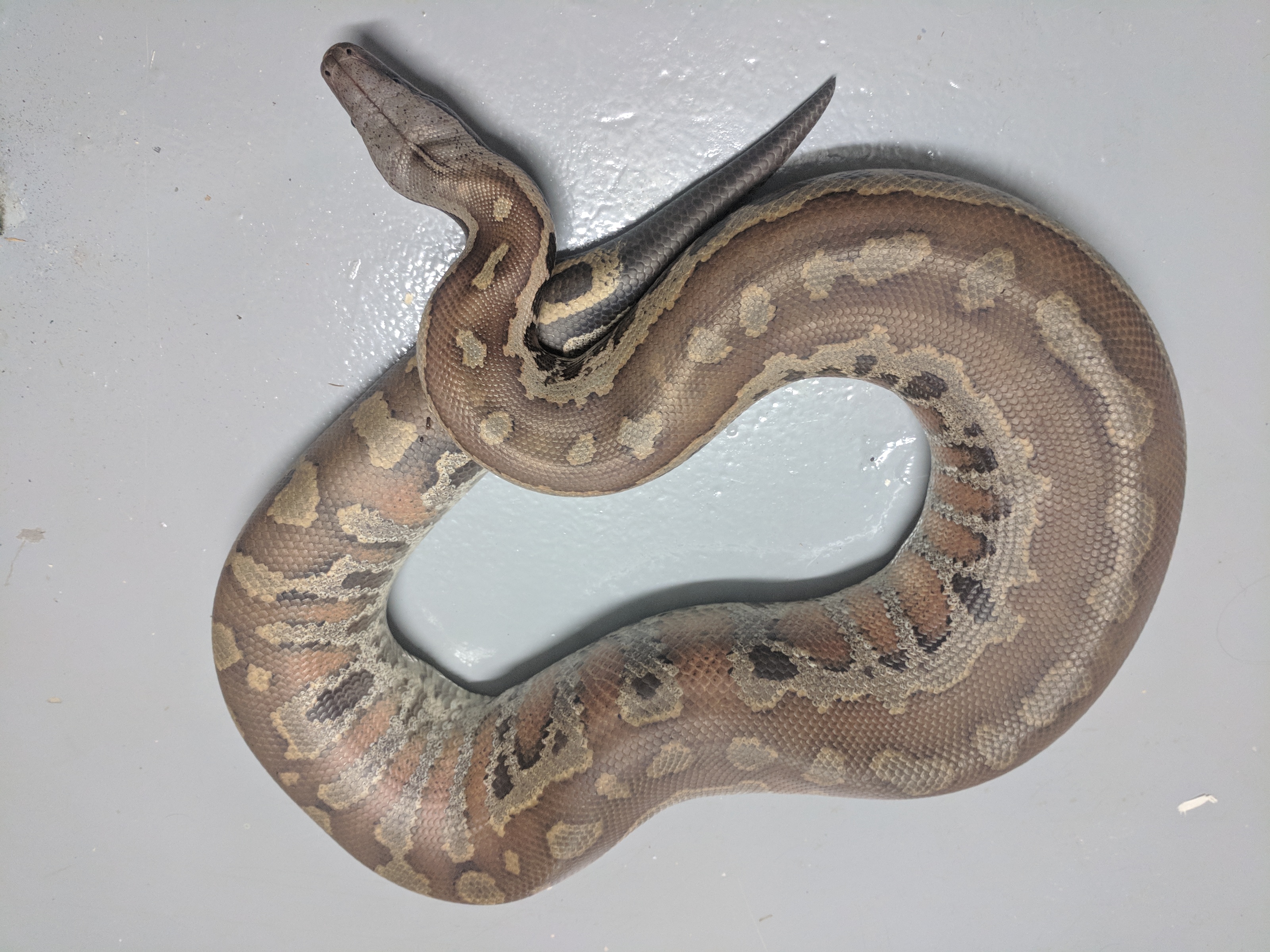 Unfortunately I only have terrible basement photos of him right now, but I still wanted to share. This is Leech, my new Blood Python. I have wanted a blood for a while now, and when Leech came available (as a tame adult male) I jumped at the chance. He arrived last month (pictures of him in the tank) but was in shed, and then he had to eat and digest, so Monday was the first day I got to take him out for some handling. We’re still getting to know each other of course, but he enjoyed some time checking out my basement, and I enjoyed snapping some pictures of him. I hope you enjoy the pictures as much as I enjoy having him here 🙂